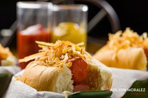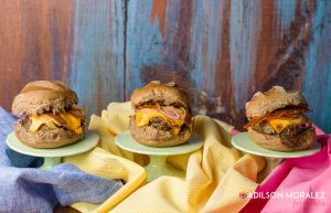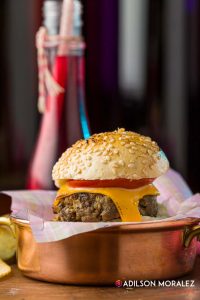 Outro ponto de atenção foi a composição dos guardanapos bem coloridos juntos com os hambúrgueres. Tivemos que fazer vários ajustes para que eles trouxessem as cores desejadas na composição sem roubar a cena dos sanduíches, que eram o tema principal. Ou seja, nada como um bom desafio para sair do tradicional e tentar trazer algo de novo na fotografia de gastronomia.